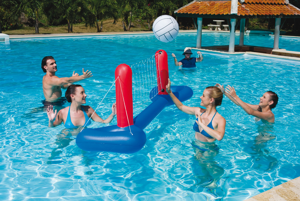 Nafukovacia volejbalová súprava pre každý typ bazéna. S touto hrou si v bazéne užijete veľa zábavy. Vyrobená z pevného vinylu.