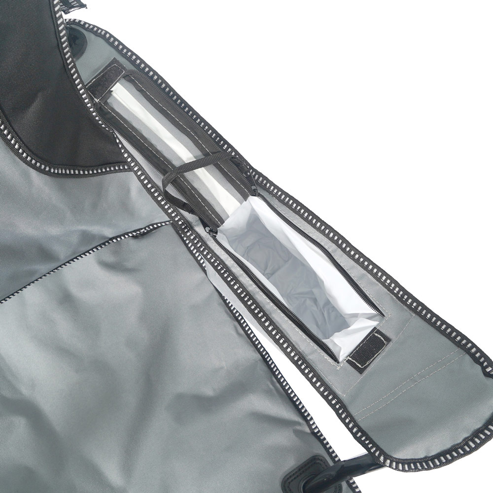 Materiál 100% polyester - dvojitá vrstva odolnej polyesterovej tkaniky 600D s PE záterom, navyše vystužená bavlnenou podšívkou
