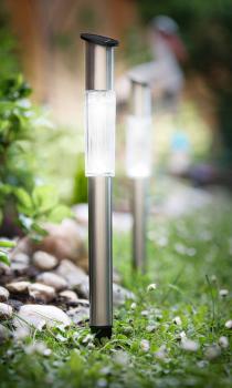 Solárne lampy z nehrdzavejúcej ocele sa dodávajú v súprave 4 kusov.