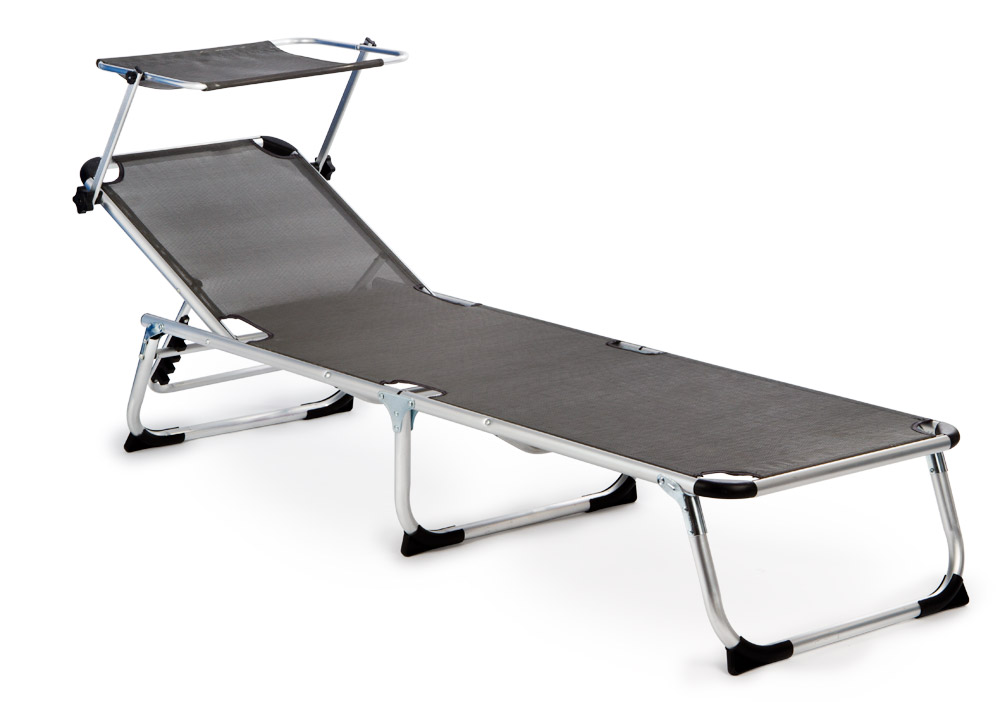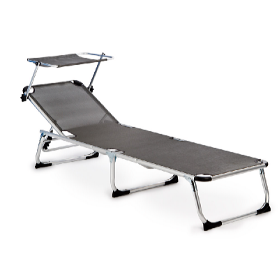 Pohodlné záhradné lehátko, ktoré môžete umiestniť na záhradu alebo si ho vziať so sebou na kempovanie. Na ležadle môžete relaxovať aj na ostrom slnku, pretože zabudovaná strieška chráni vašu tvár.