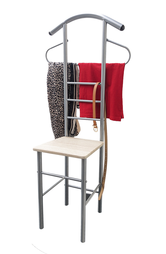 Nemý sluha stolička je pomocníkom do každej spálne, šatne či predsiene, kde sa postará o poriadok. Nemý sluha stolička umožní pohodlne odložiť oblečenie, aby sa nezmačkalo a zostalo čisté - košele, tričká, nohavice, kravaty,....