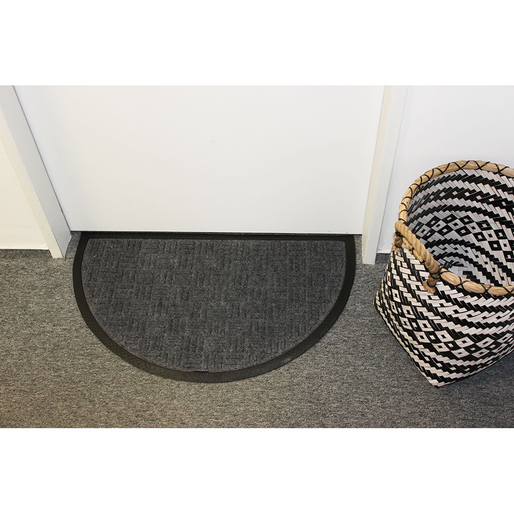 Polkruhová rohožka má na spodnej strane protišmykový gumový povrch. Vrchná strana má odolný kobercový vlas z polypropylénu v sivej farbe, ktorý pomáha veľmi dobre odstraňovať všetky nečistoty na obuvi. Rohožka je určená do vnútorných priestorov - predsiene, chodby, zádveria, na vstupy z terasy, pivnice alebo garáže. Možno ju použiť aj na chránené, kryté vonkajšie vchody.
