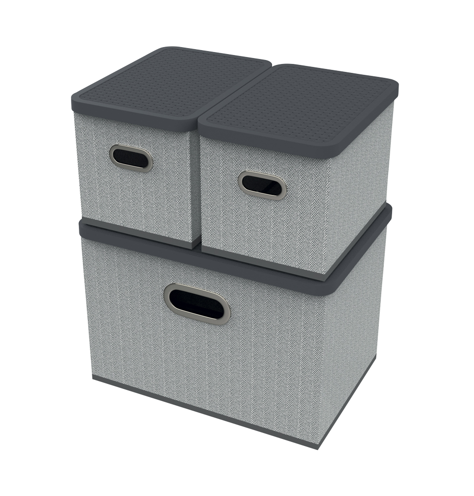 HomeLife Úložný box s vekom súprava 3 ks - sivá - 5103