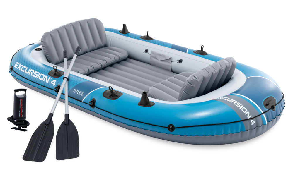 Nafukovací čln Excursion 4 Set má 3 vzduchové komory vrátane pomocnej vnútornej komory, je vybavený praktickýmm držiakom na ľahké uchopenie, po obvode člna je záchytné lano na jednoduchú manipuláciu.Nafukovací čln Excursion 4 Set má v zadnej časti otvory na pripojenie motora.