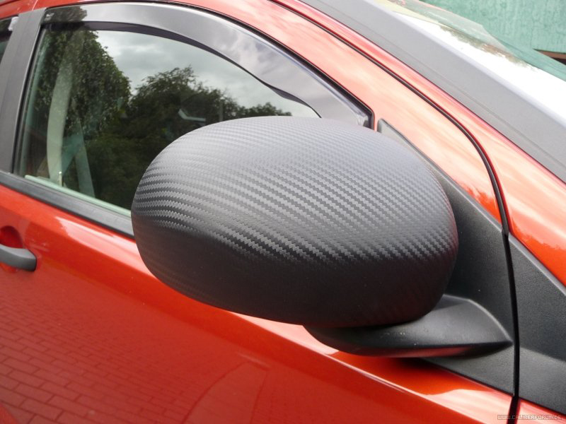 - před samotným nalepení je třeba zkontrolovat polohu fólie tak, aby byl dodržen jednotný směr "karbonových vláken"